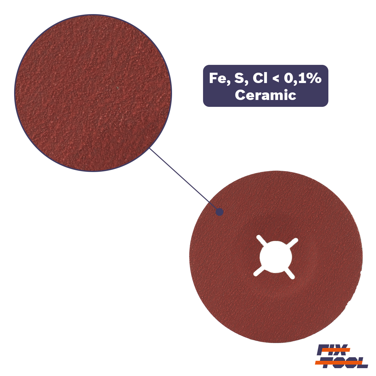Керамические зерна и вулканизированное волокно толщиной 0,8 мм позволяет зачищать не только нержавеющую сталь, а также жаропрочные стали, углеродистые и кованные.