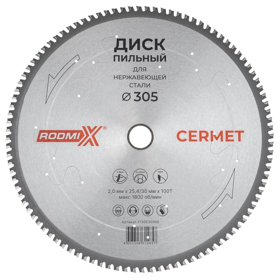 Твёрдосплавный пильный диск Cermet предназначен для резки заготовок из нержавеющей стали. Диаметр диска: 305 мм. Посадка диска: 25,4/30 мм. Толщина диска: 2,0 мм. Кол-во зубьев: 100 шт. Производство: Китай.