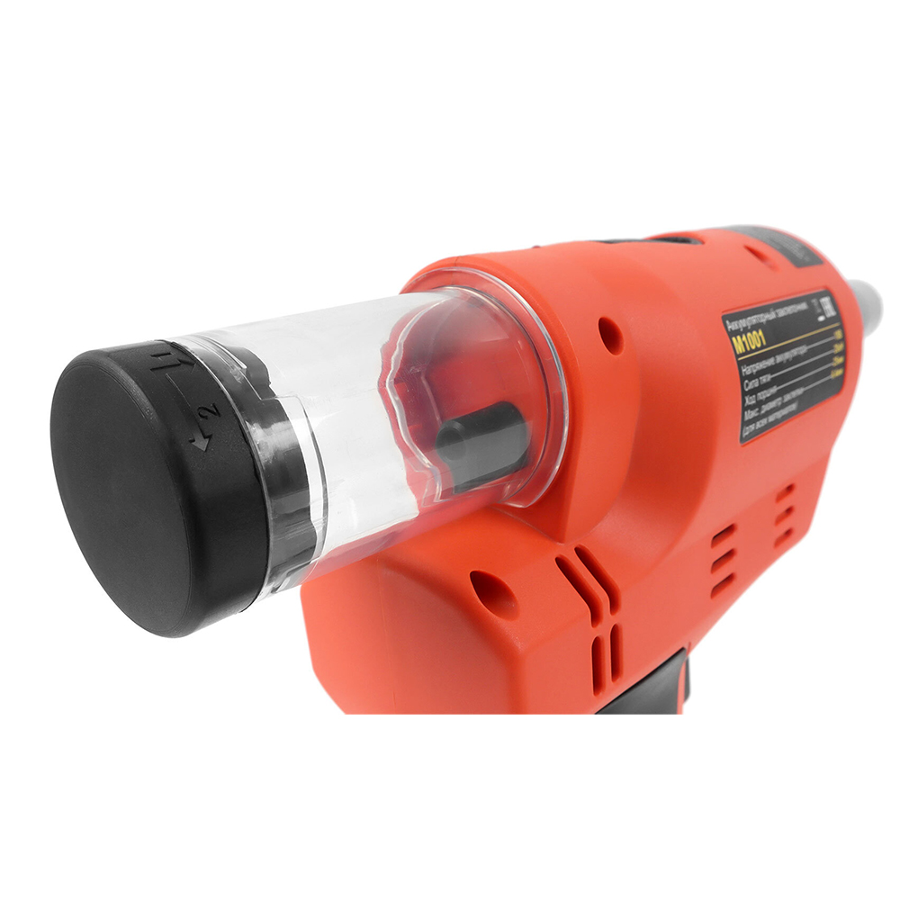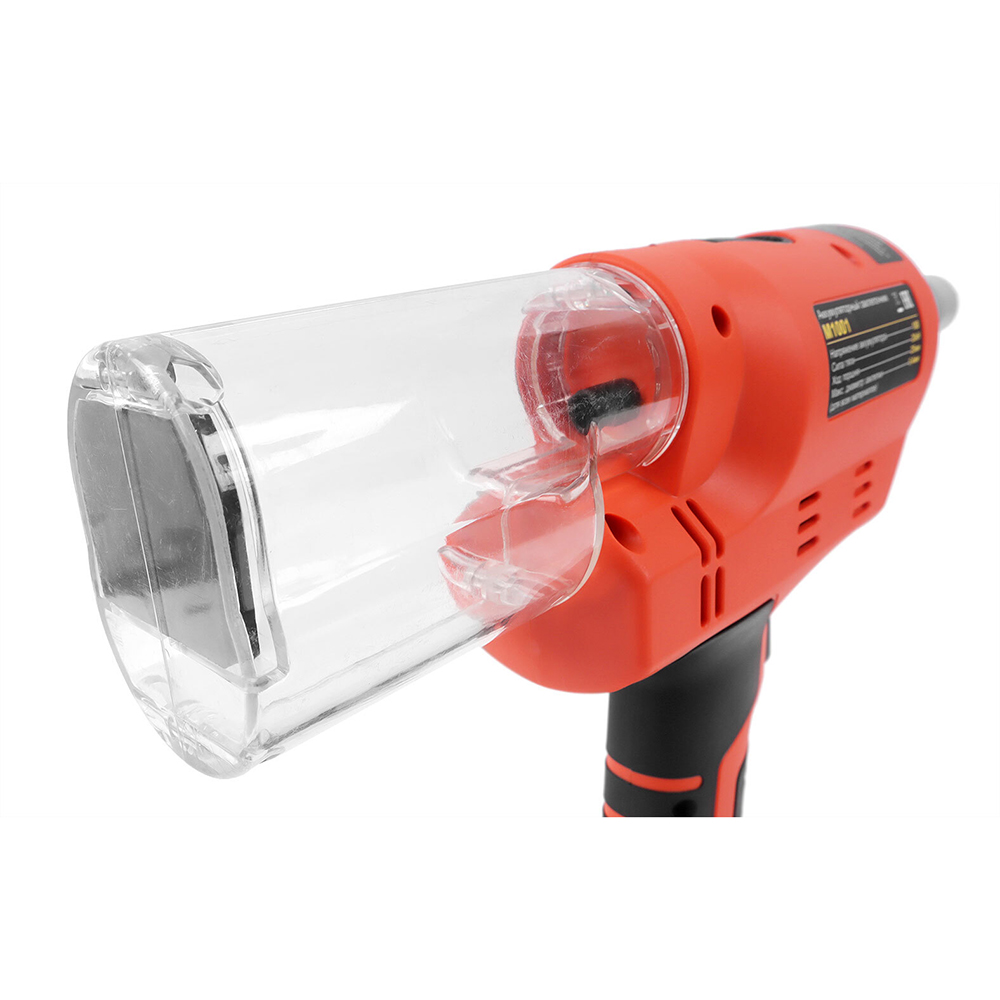 Автоматический выброс хвостовиков в прозрачный контейнер предотвращает заклинивание инструмента и сохраняет рабочую зону в чистоте. Визуальный контроль наполнения без остановки работ.