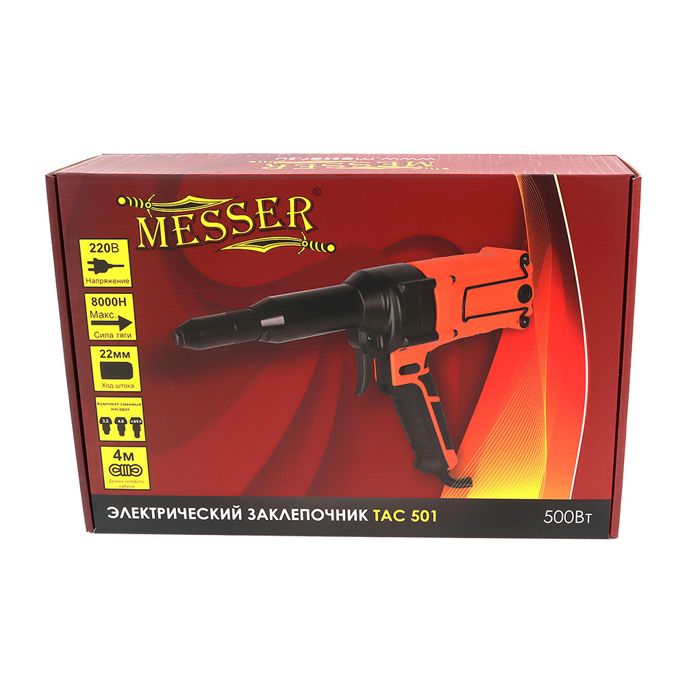 Обновленная модель TAC 501 получила усиленный мотор 500 Вт и модернизированный двойной редуктор. Инструмент обеспечивает стабильную тягу и высокую скорость работы: установка стальной заклепки 4.8 мм занимает всего 0.7 секунды.